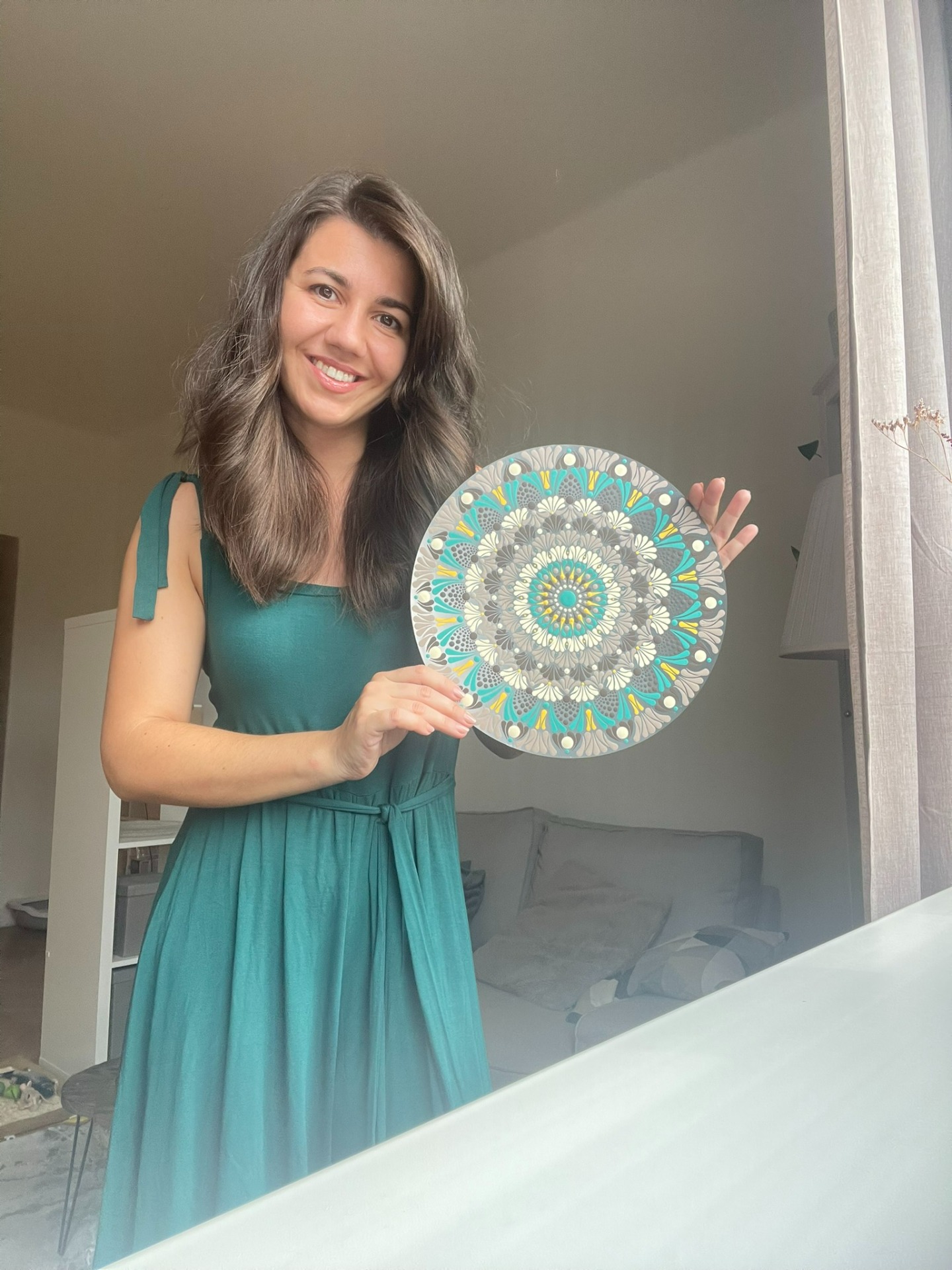 První mandalu jsem vytvořila v září roku 2023, byla malinká, upatlaná a do dokonalosti měla opravdu daleko. Zjistila jsem, že namíchat správně barvy a udržet nástroj ve správné poloze není úplně sranda, ale nezalekla jsem se prvních neúspěchů. S každou další mandalou vidím svůj pokrok a to mě pohání tvořit další a další.